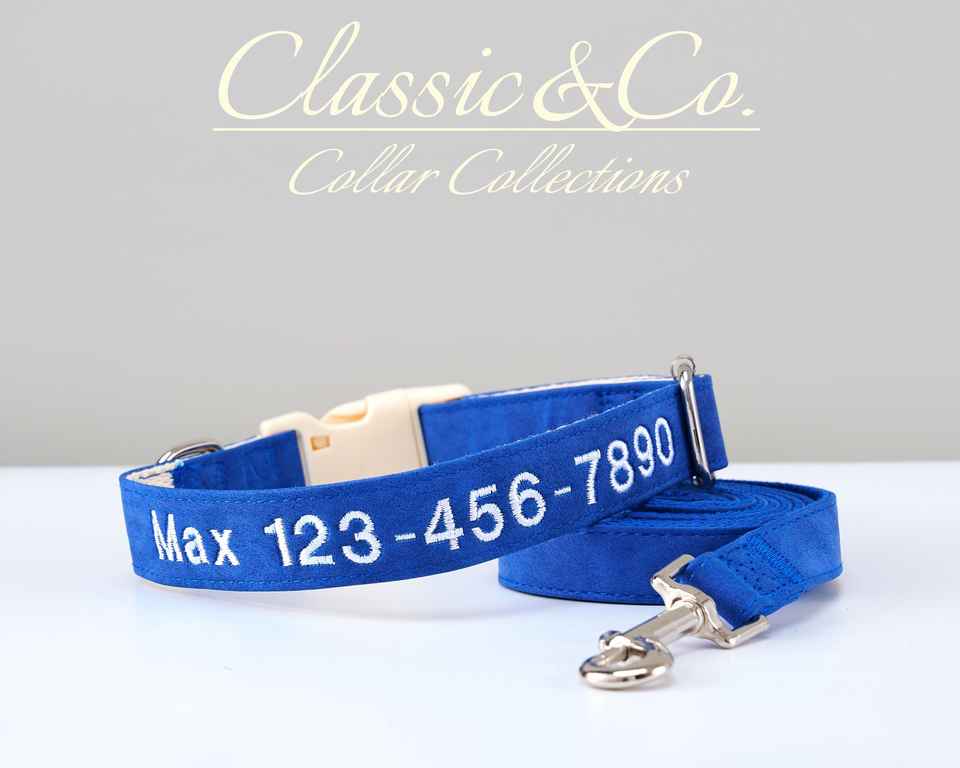 Purple Dog Collar Name, Premium Embroidered Suede Leather With Leash, Multiple Colo & Sizes, Gift-Ready Packaging For Pet