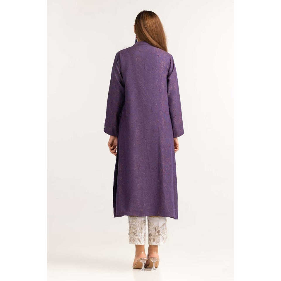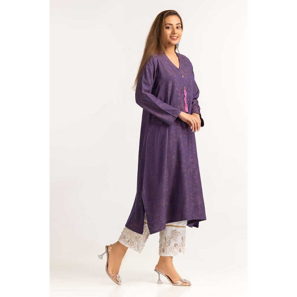เสื้อผู้หญิงสีม่วงลายดอกไม้ปักลายแจ็คการ์ด ผ้าชีฟองโพลีเอสเตอร์ผสมผ้าป๊อปลิน แต่งลูกไม้ ไซส์ XL สำหรับใส่ทำงานช่วงฤดูใบไม้ร่วง