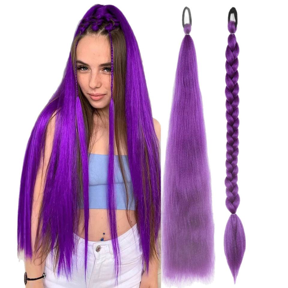 วิกผมหางม้าสีม่วงแบบถักเปีย ทำจากเส้นใยทนความร้อนสูง น้ำหนัก 140 กรัม สำหรับผู้หญิง ยี่ห้อเหอหนาน