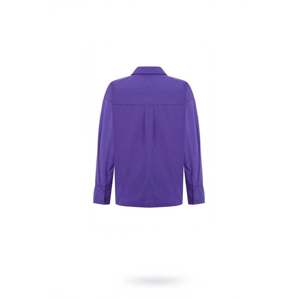 เสื้อเชิ้ตปักลายสีม่วง กระดุมหน้า ทรงเข้ารูปสำหรับผู้หญิง ไซส์ XL เสื้อคลุมลายทาง ผ้าวิสโคส ถักนิตติ้ง สำหรับฤดูใบไม้ผลิและฤดูใบไม้ร่วง