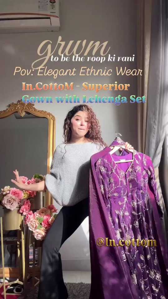 ชุดเลเฮนกาผ้าไหมเฟนดี้สีม่วง ดีไซน์เนอร์ งานปักดิ้นและเลื่อมผ้าไหมเฟนดี้ พร้อมชุดเดรสลูกไม้แฟนซี และเลเฮนกาพร้อมผ้าคลุมไหล่