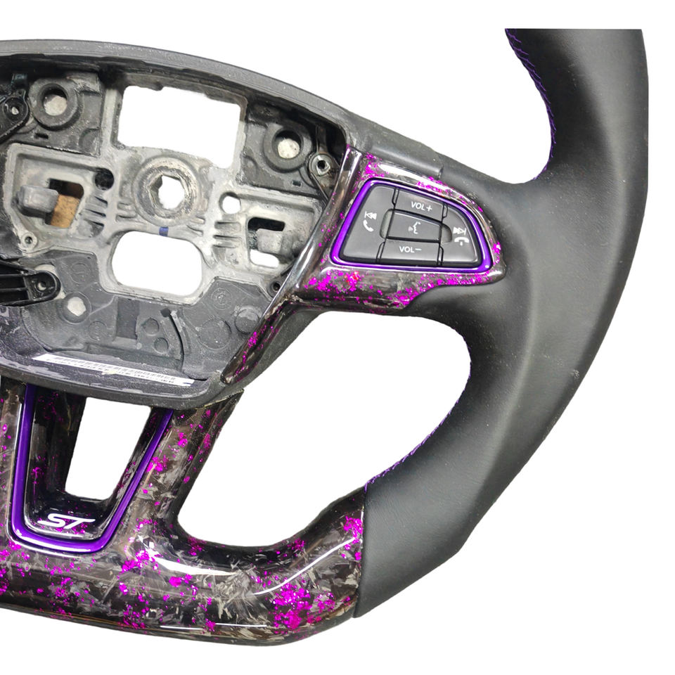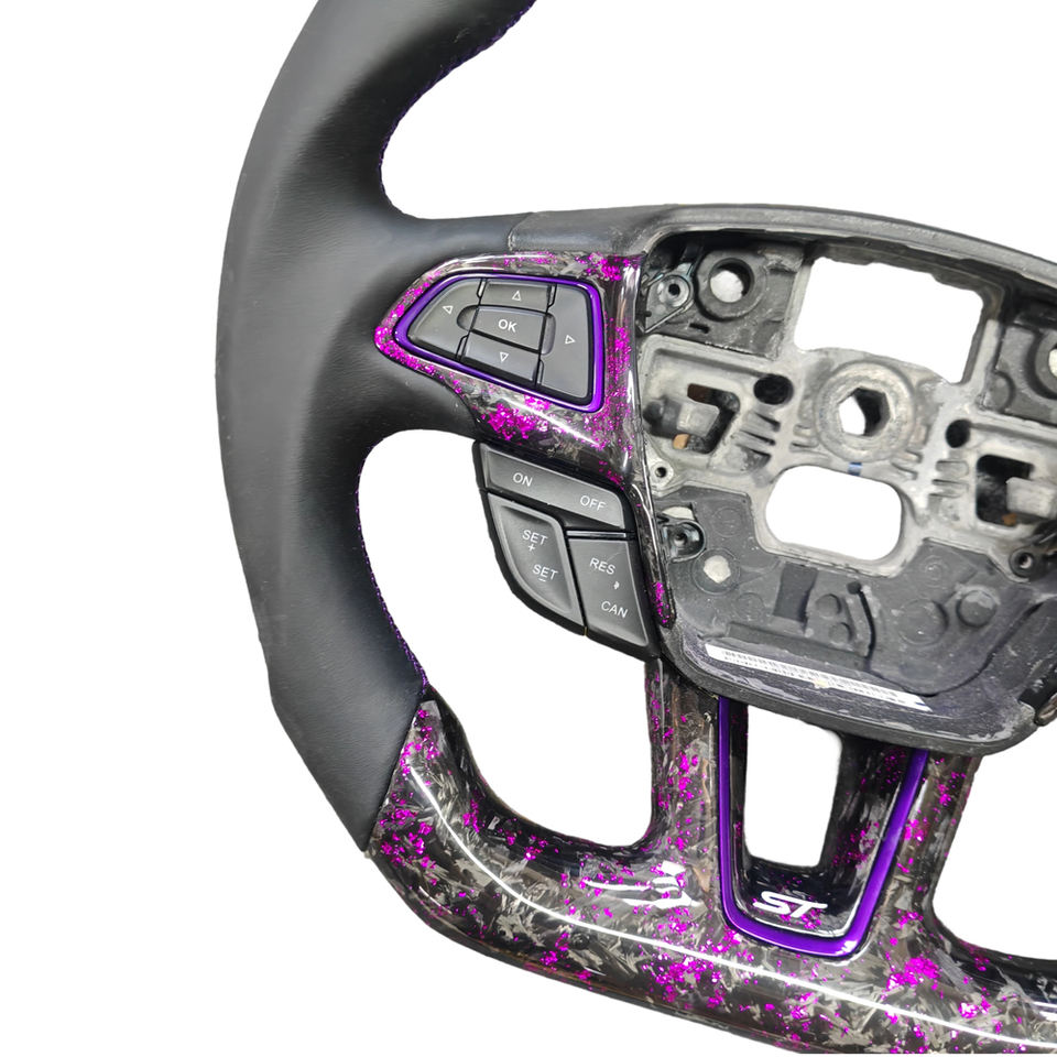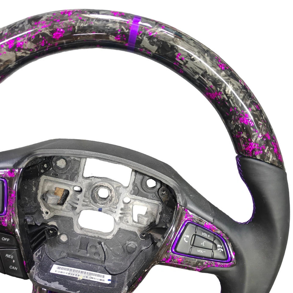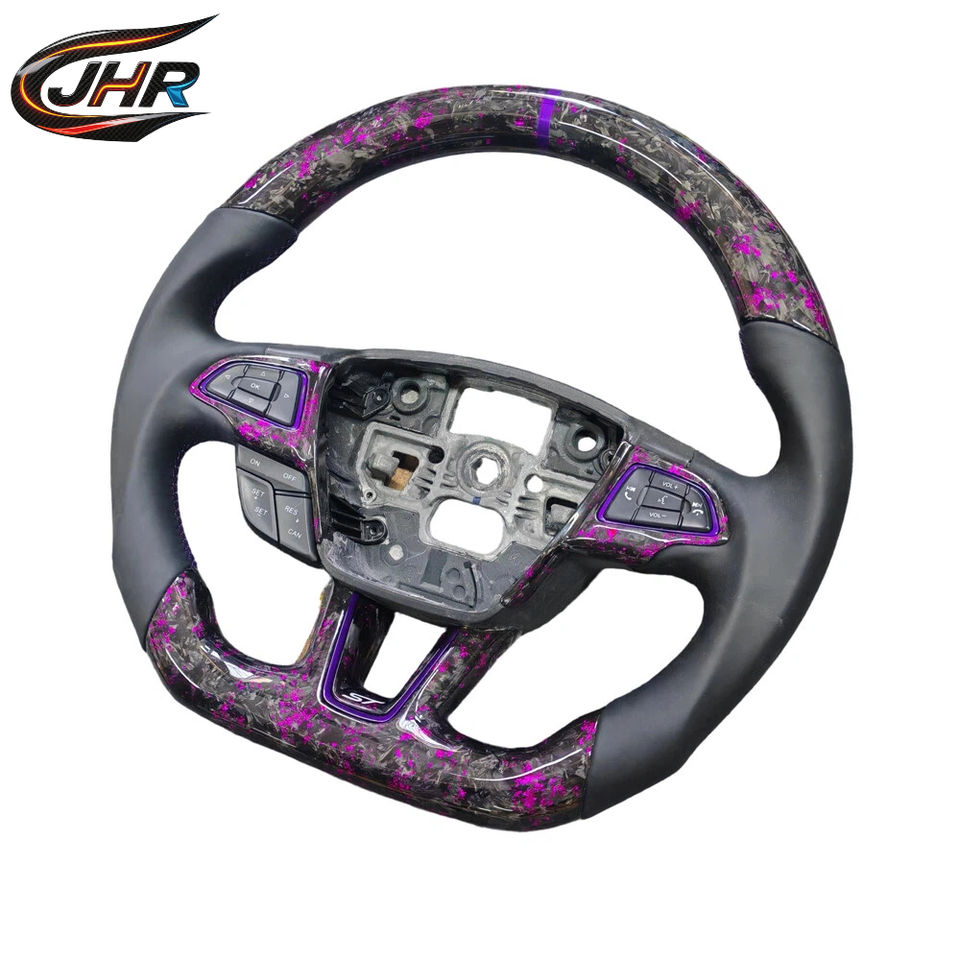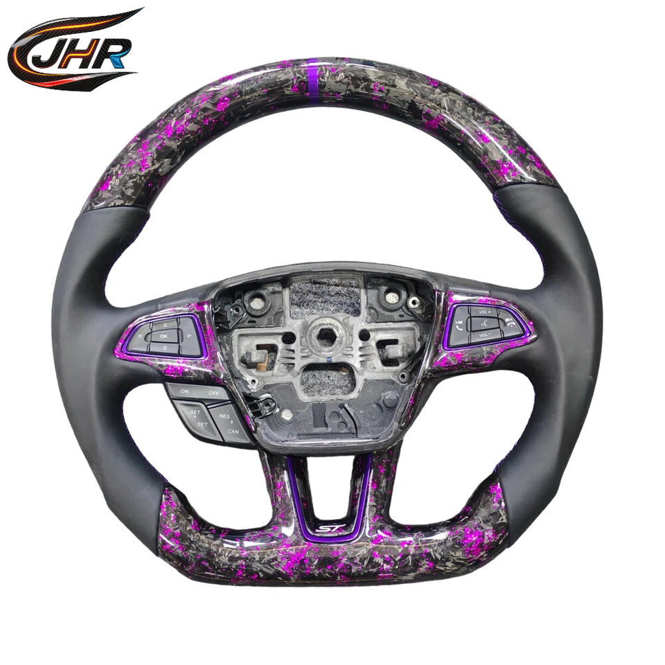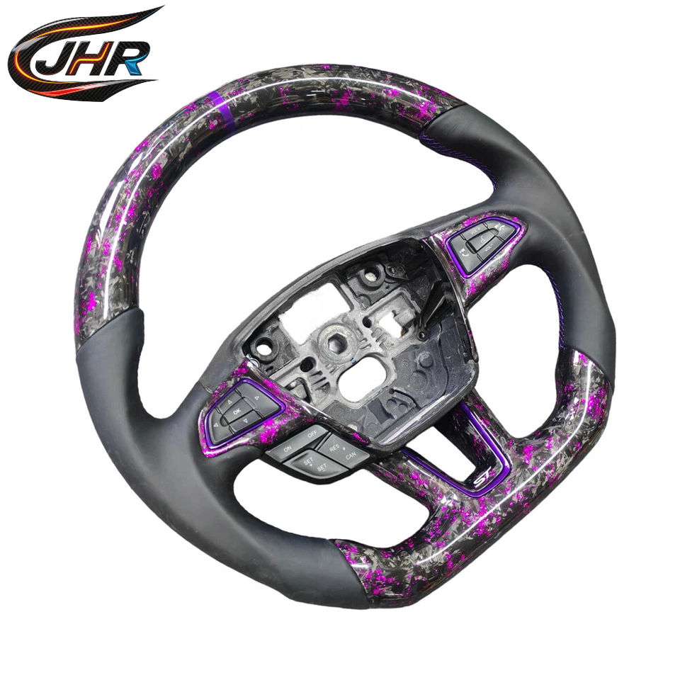 พวงมาลัยคาร์บอนไฟเบอร์สีม่วงแบบฟอร์จ สำหรับอัพเกรดรถฟอร์ดโฟกัสใหม่ แบบ OEM สามารถปรับแต่งได้