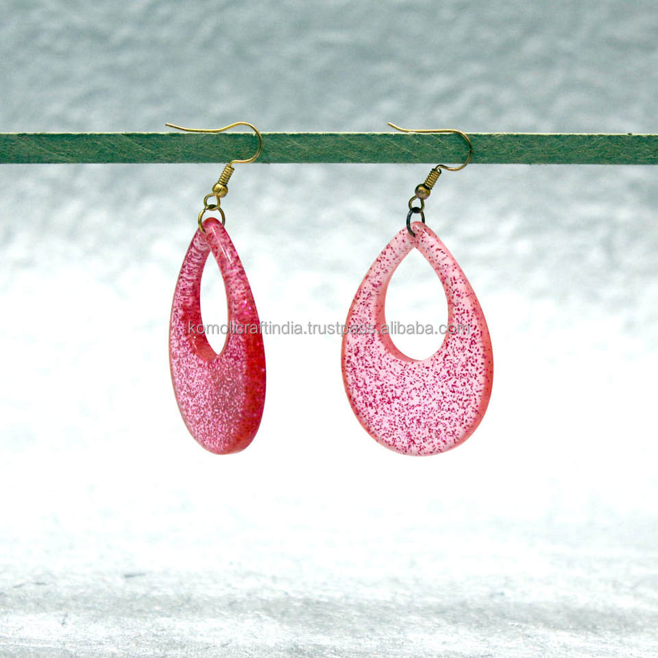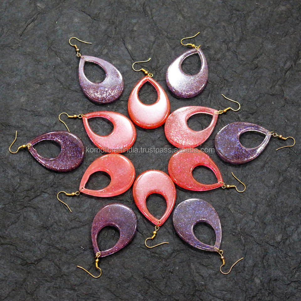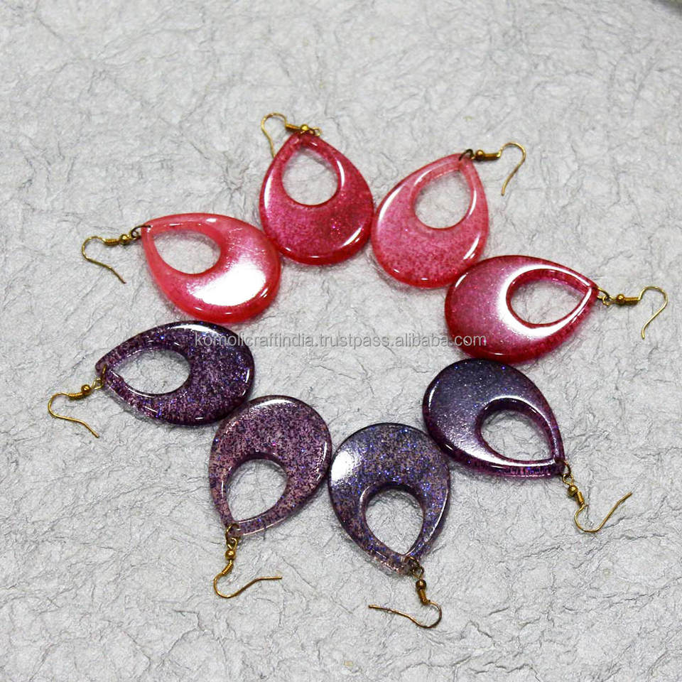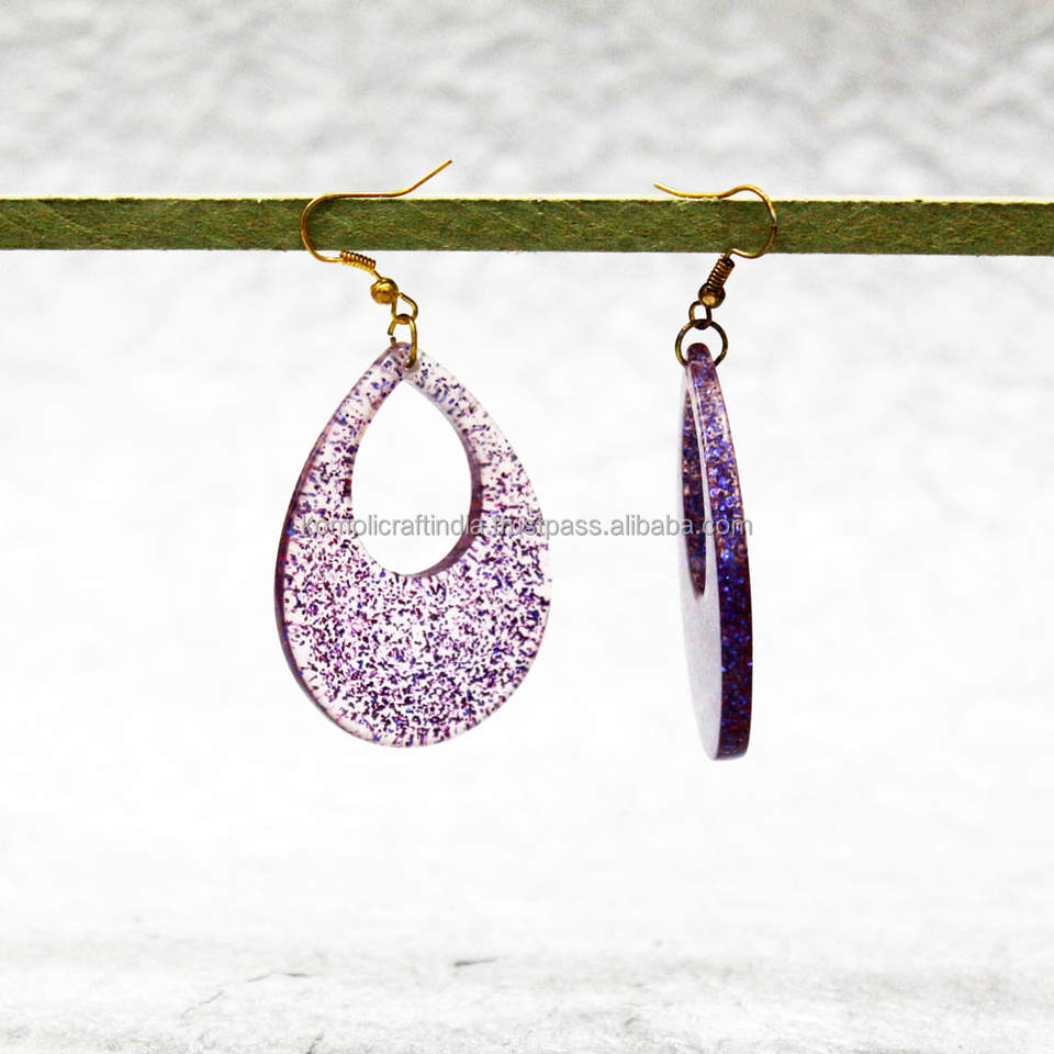 สีม่วงแววออกแบบหยดน้ำตาเครื่องประดับที่กำหนดเองทำด้วยมือรอบการออกแบบต่างหูรูปทรงเรขาคณิต
