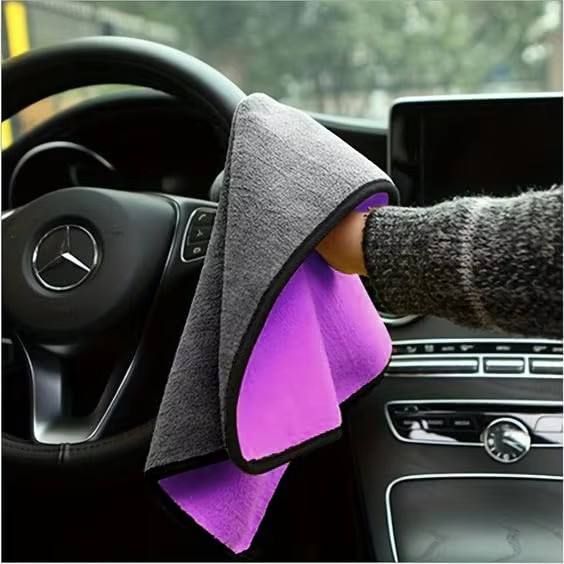 ผ้าไมโครไฟเบอร์สีม่วง/เทา ผ้ากำมะหยี่คอรัล แห้งเร็ว โพลีเอสเตอร์ สำหรับล้างรถ ดูแลรักษารถยนต์ ทำความสะอาดบ้าน นุ่มพิเศษ