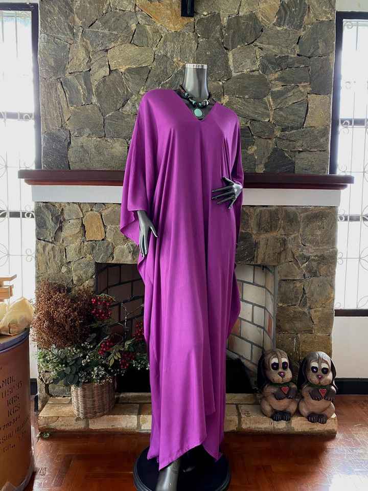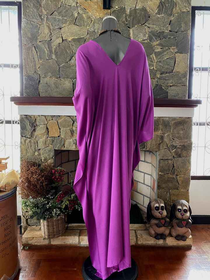 ชุดเดรสคาฟทันผ้าเรยอนย้อมสีม่วงแบบทำมือ ไซส์พลัส คอวี ทรงหลวม สไตล์โบโฮ ยาวแบบแม็กซี่
