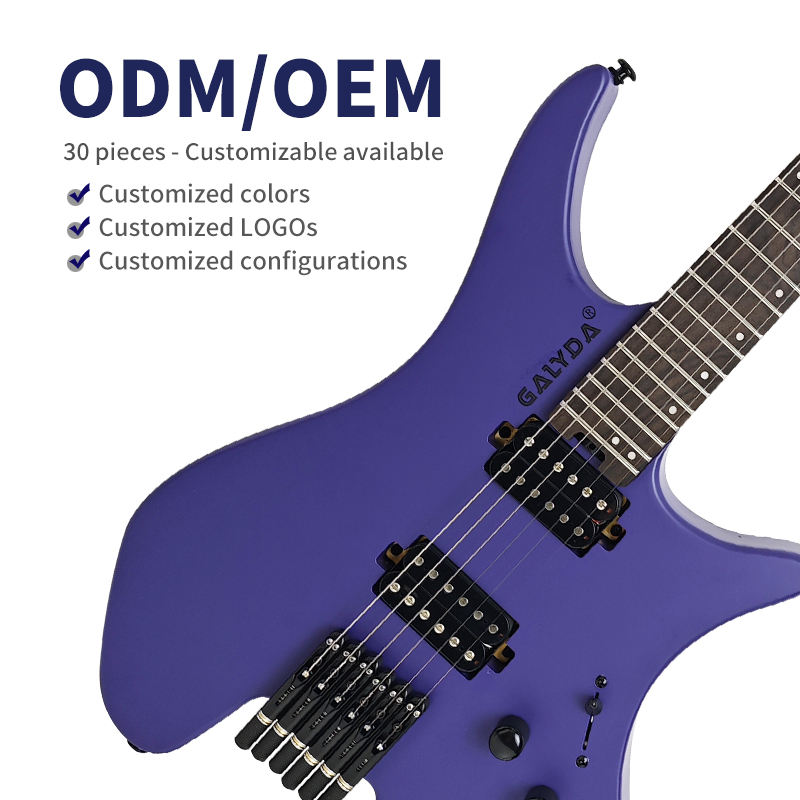 กีตาร์ไฟฟ้าสีม่วงแบบไม่มีหัว พร้อมฟิงเกอร์บอร์ดไม้โรสวูด 6 สาย ปิ๊กอัพ H-H และคอไม้เมเปิล พร้อมใช้งานบนเวที