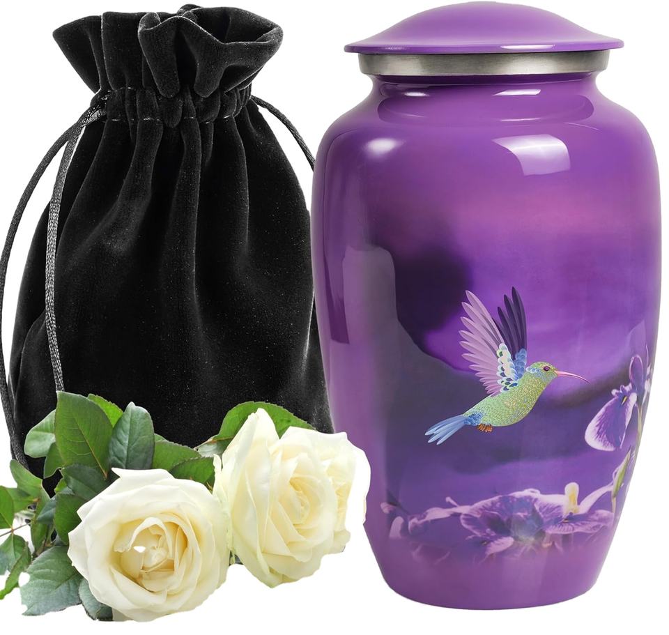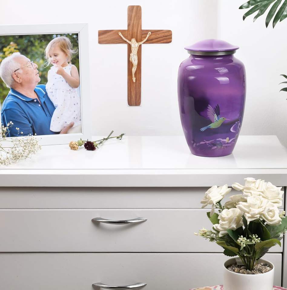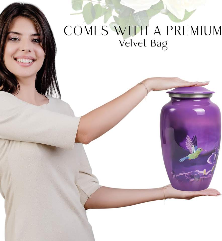 โกศโลหะรูปนกฮัมมิงเบิร์ดสีม่วงโกศสำหรับงานศพผู้ใหญ่ผู้หญิงและผู้ชาย