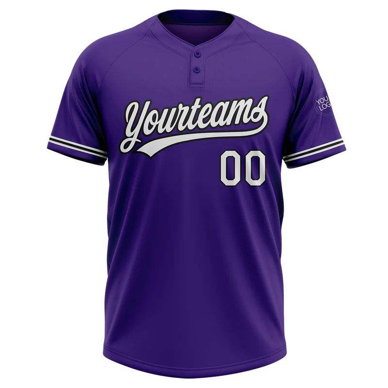เสื้อเจอร์ซีย์สีม่วงสีขาวพิมพ์ชื่อเสื้อเบสบอลมีกระดุม2ปุ่มเสื้อเจอร์ซีย์ออกแบบได้ตามต้องการ