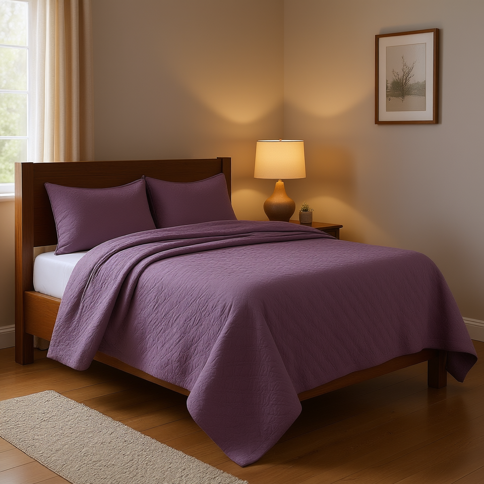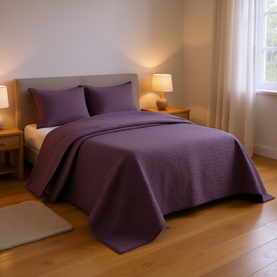 ชุดผ้าคลุมเตียงสีม่วงแบบกลับด้านได้ 3 ชิ้น คอลเลคชั่นผ้านวมลายเรียบสำหรับทุกฤดู