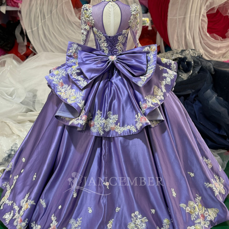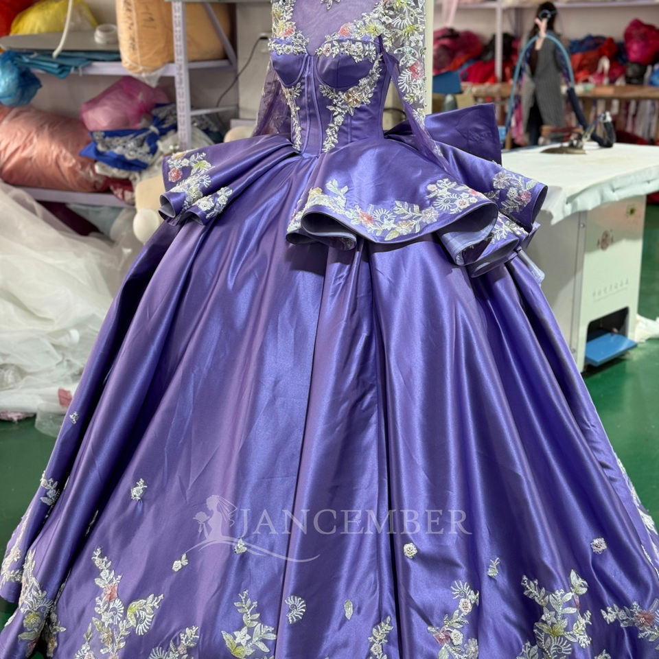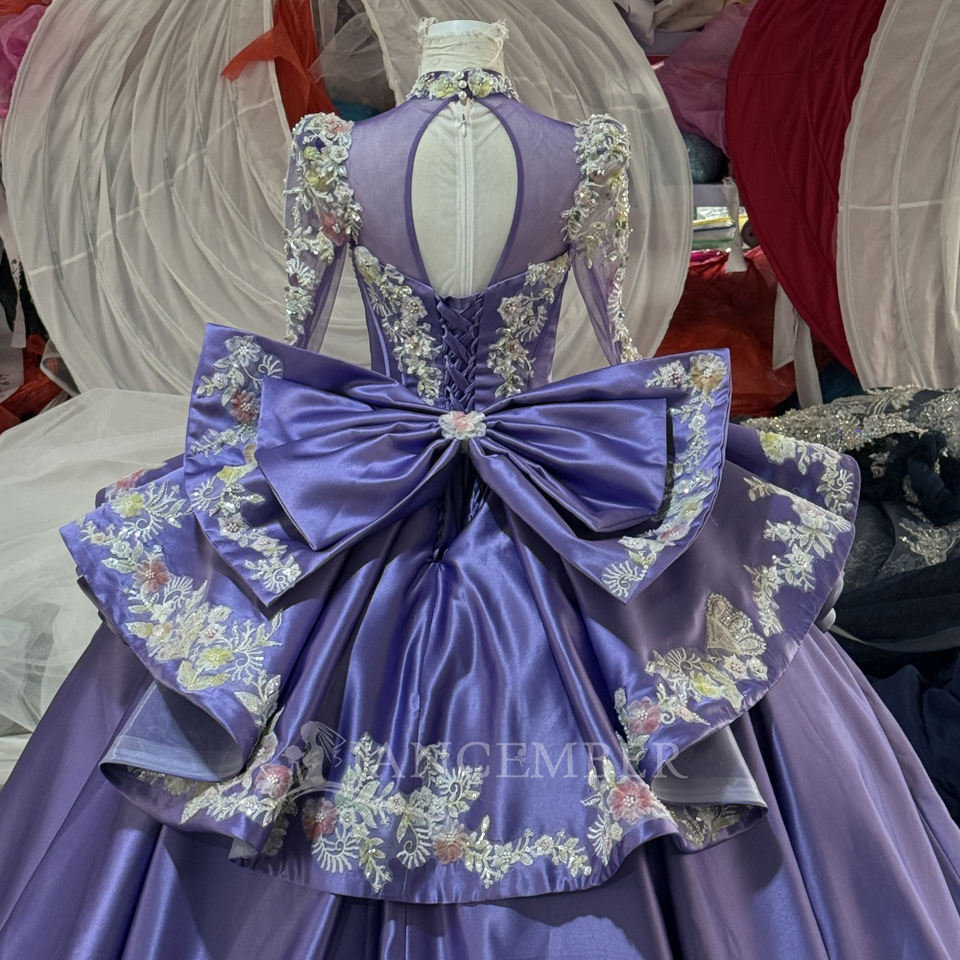 ชุดเดรสงาน Quinceanera สีม่วงลายดอกไม้ประดับลูกไม้ปักเลื่อม ป้องกันไฟฟ้าสถิต แบบเปิดหลัง ทรงบอลกาวน์ทันสมัย คอรูปหัวใจ