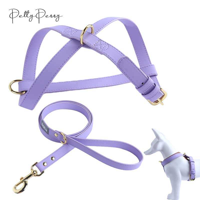 สายจูงและปลอกคอสัตว์เลี้ยงหนัง PU ลายทางสีม่วง - น้ำหนักเบา สบาย แข็งแรง และทนทาน