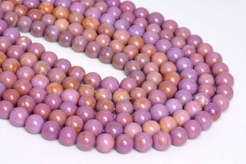 ลูกปัดฟอสโฟไซเดอไรต์สีม่วงชมพู ของแท้จากธรรมชาติ รูปทรงกลม ครึ่งเส้น ขนาด 7.5 นิ้ว จำนวนมาก
