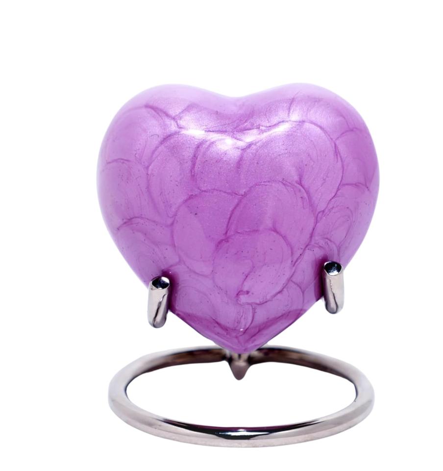 โกศสีม่วงธรรมดาสำหรับขี้เถ้าขี้เถ้าขี้เถ้าที่ระลึกงานศพของชำร่วยของชำร่วยรักโกศตกแต่งด้วยทองเหลืองรูปหัวใจพร้อมขาตั้งกำหนดขนาดได้