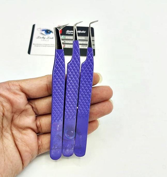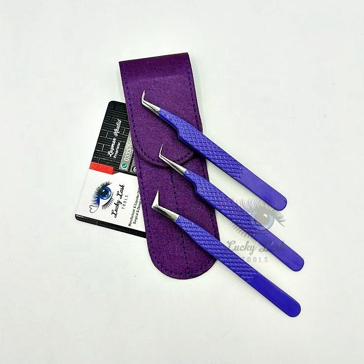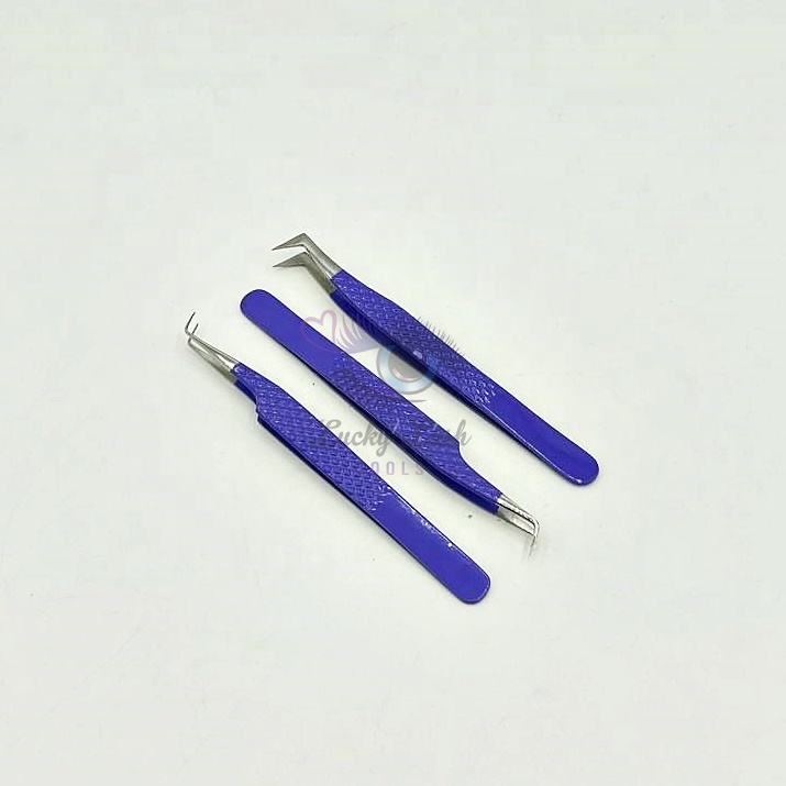 แหนบต่อขนตาแบบรัสเซียนวอลุ่ม 90 องศา สีม่วง ยี่ห้อ Private Label ทำจากสแตนเลส ปลายแหลม รุ่น LUCKY LASH TOOLS