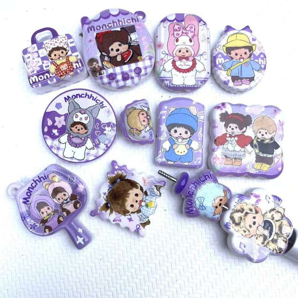 อุปกรณ์ตกแต่งลูกปัดพิมพ์ลายสองด้านแบบเจาะรู สีม่วง สำหรับทำสายคล้องโทรศัพท์ กระเป๋า ของตกแต่ง DIY และอุปกรณ์ตกแต่งปากกา