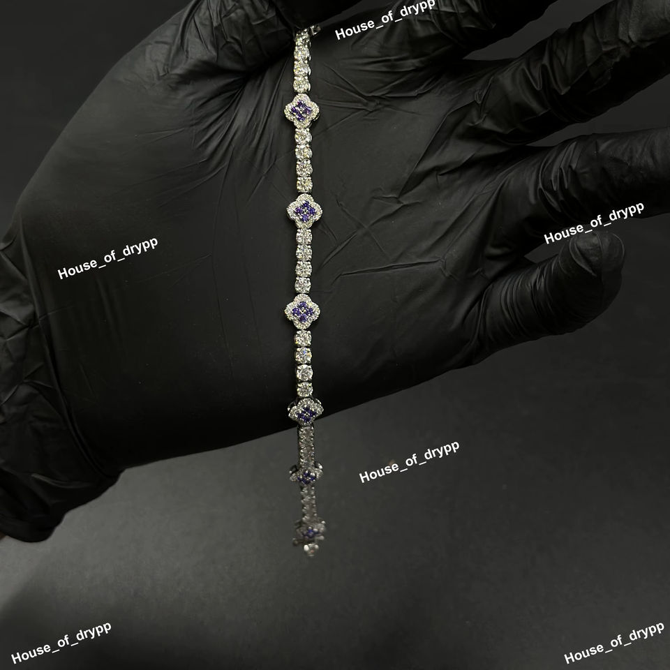 สร้อยข้อมือเพชรเทนนิสประดับมอสซาไนต์ทรงกลมสีม่วง ดีไซน์หรูหราเคลือบเงิน สำหรับผู้หญิง เหมาะสำหรับงานแต่งงานและงานปาร์ตี้
