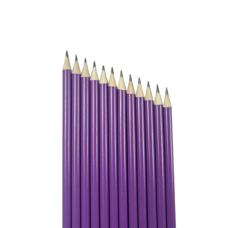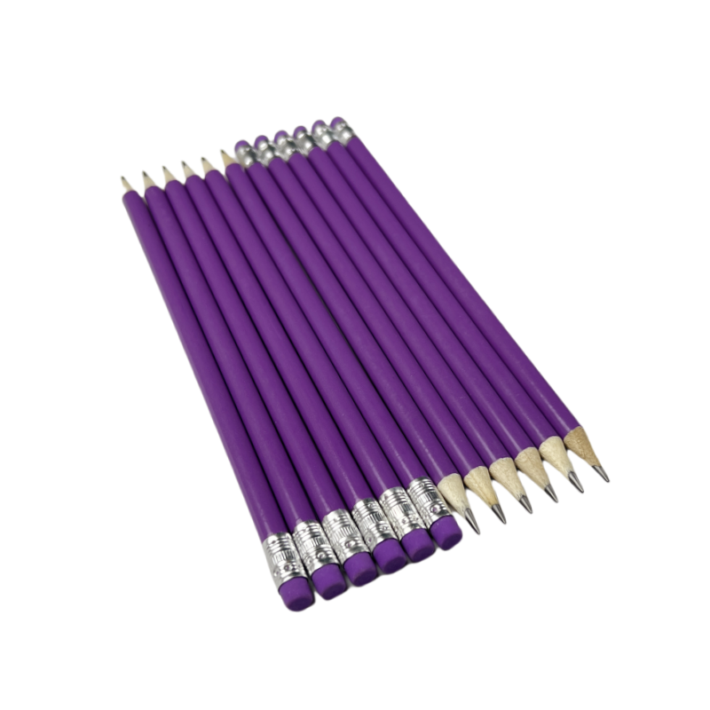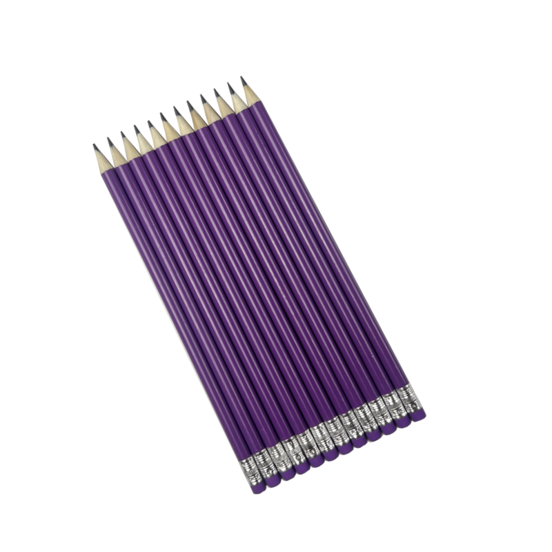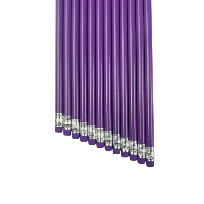 ดินสอไม้กลมสีม่วง HB พร้อมยางลบ - รองรับการสกรีนโลโก้และบรรจุภัณฑ์ตามสั่ง ได้รับการรับรองมาตรฐาน FSC EN71 ISO ขายเป็นชิ้น