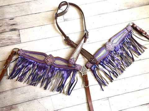 ชุดหมุดตะเข็บนางเงือกสีเมทัลลิกสีม่วงชุดที่มีน้ำหนักเบาประดับลูกปัดหนังม้าตามฤดูกาล5ชิ้นอานตะวันตก