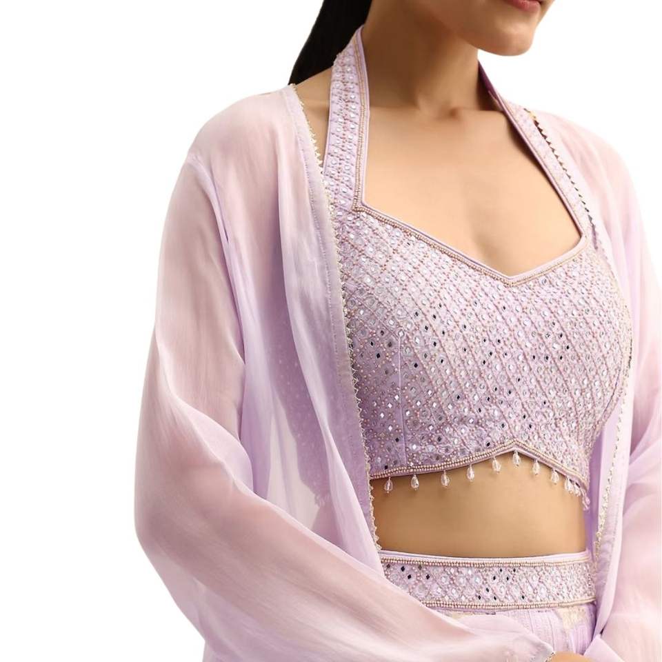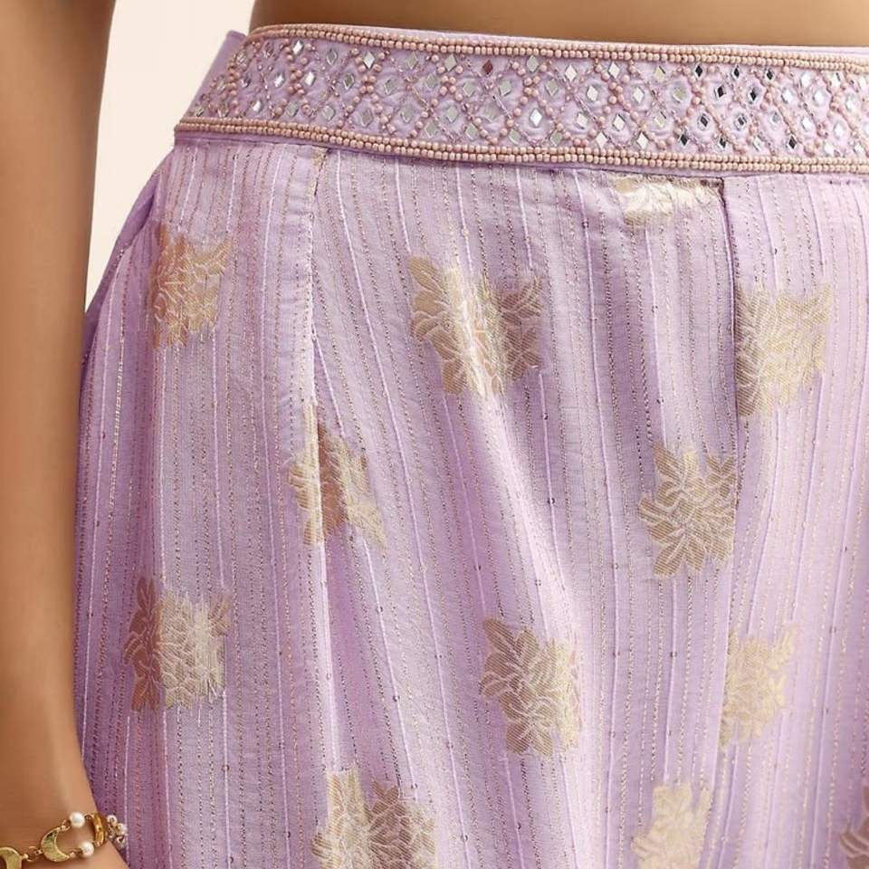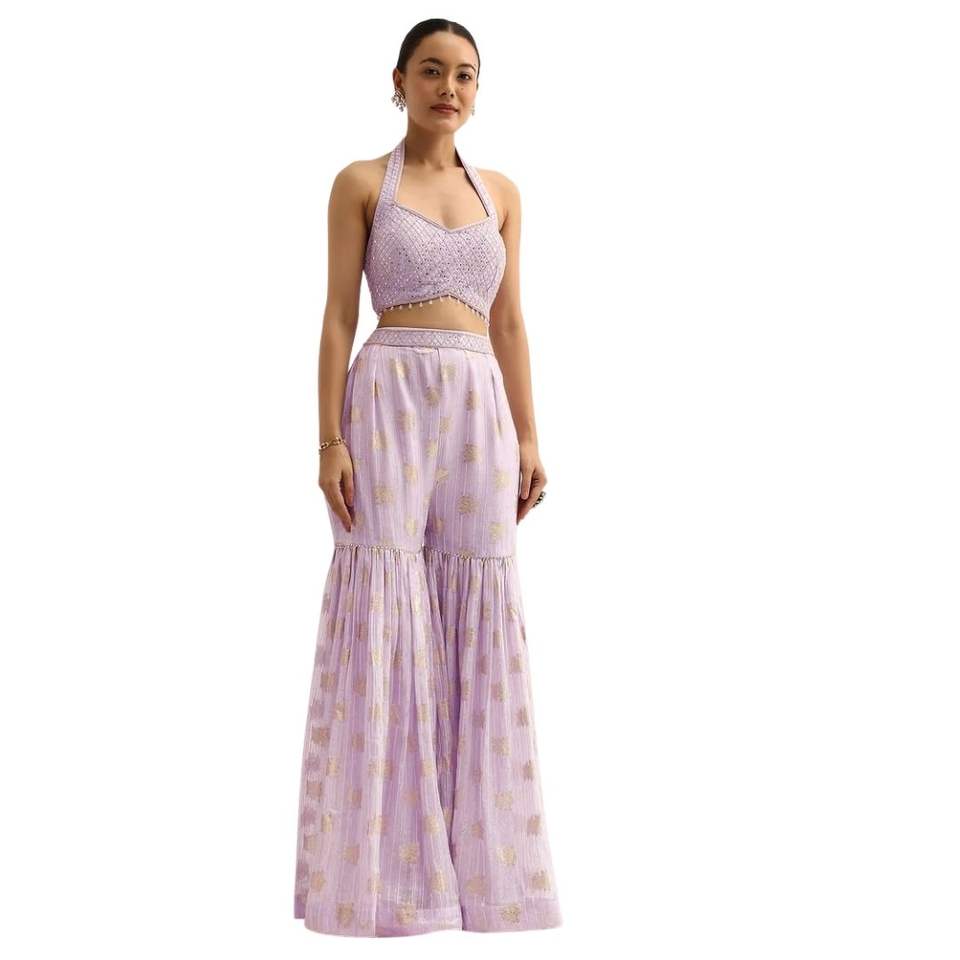 เสื้อครอปผ้าไหมสีม่วงพร้อมแจ็กเก็ตและชาราราราทันสมัยชุดแต่งงานสำหรับผู้หญิงที่สง่างาม