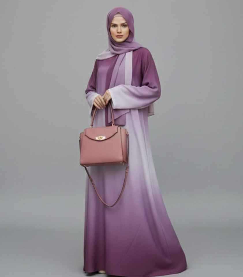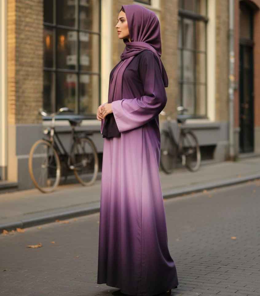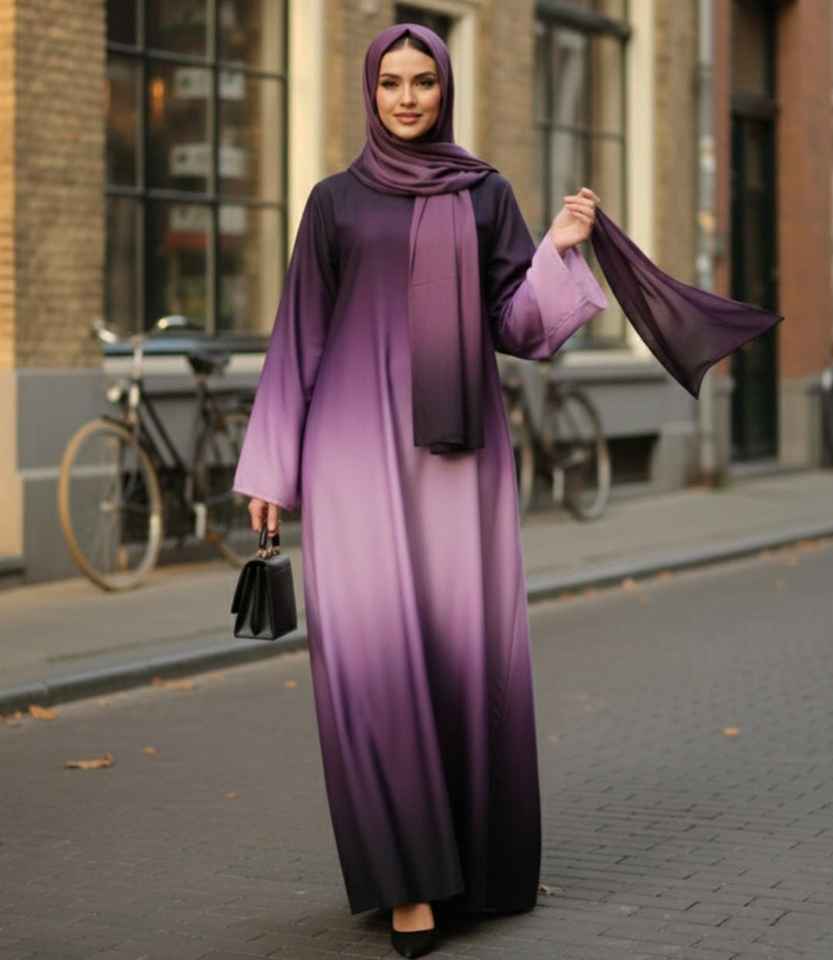 ชุดอาบายะห์สีม่วงแบบเรียบหรู ผ้าซาตินโพลีเอสเตอร์ ยาวคลุมเท้า แขนยาว ผ้าไร้รอยต่อ ระบายอากาศได้ดี