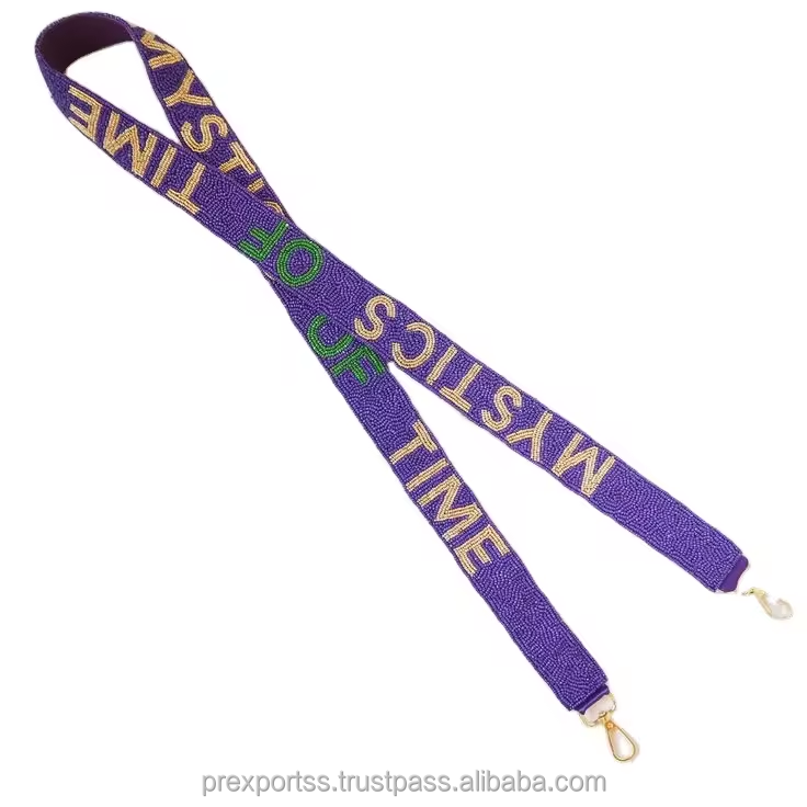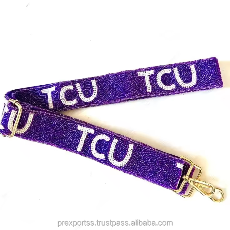 TCU สีม่วงสายลูกปัดงานแฮนด์เมดแบบสั่งทำปักลายสายคล้องไหล่ปรับได้สายคาดลำตัวกระเป๋าเข็มขัดขายส่ง Gameday อินเทรนด์