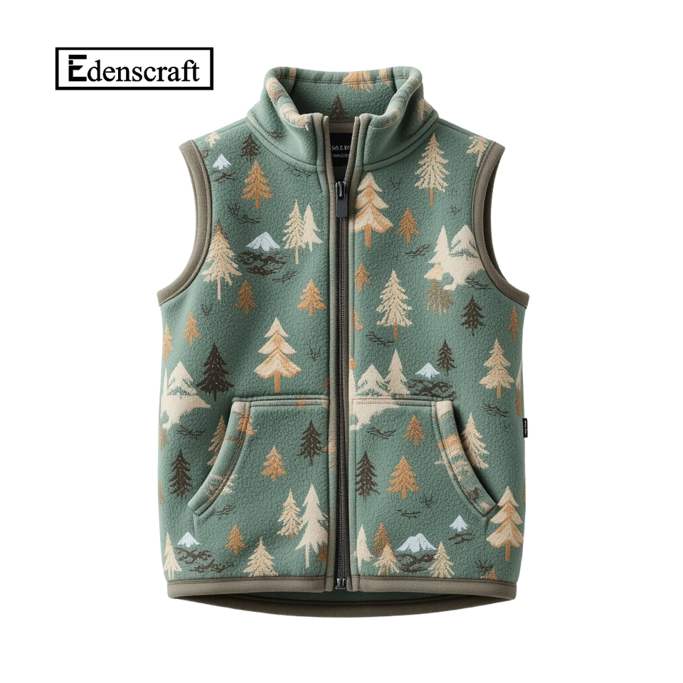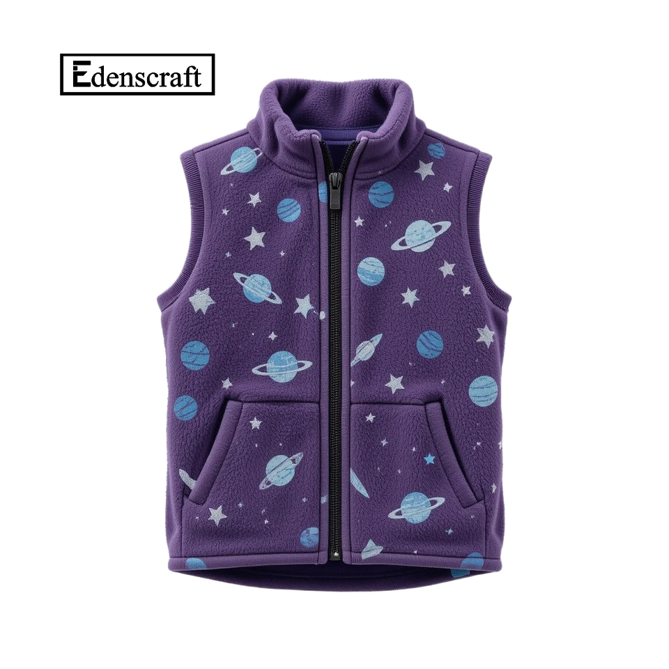 เสื้อกั๊กขนแกะสีม่วงสำหรับเด็กชายวัยหัดเดินมีซิปกระเป๋าอบอุ่นปกคอจีนพิมพ์ลายการ์ตูนกราฟิกระบายอากาศ
