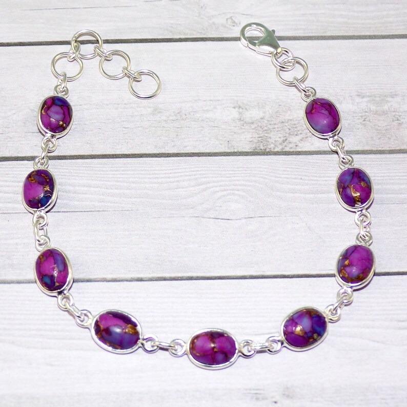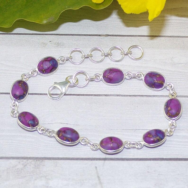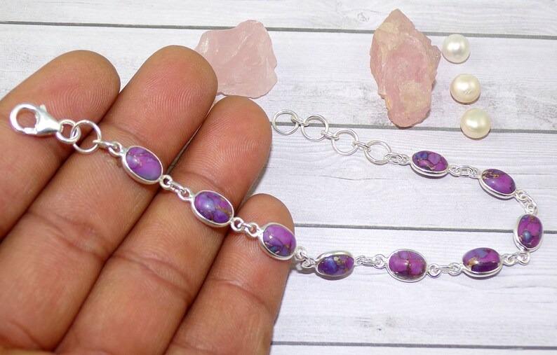 พลอยสีม่วงเทอร์ควอยซ์ของขวัญเงินแท้ 925 แฮนด์เมดเงินเทนนิสสร้อยข้อมือเครื่องประดับเครื่องประดับเงินสเตอร์ลิง
