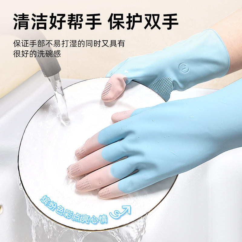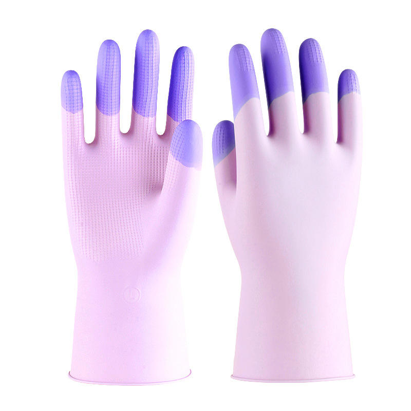 ถุงมือยางลาเท็กซ์สองสีสีม่วง 26 ซม. หนาขึ้น กันน้ำ สำหรับทำความสะอาดห้องครัว ล้างจาน