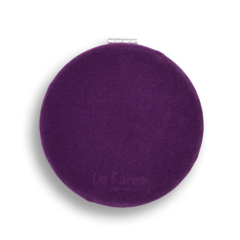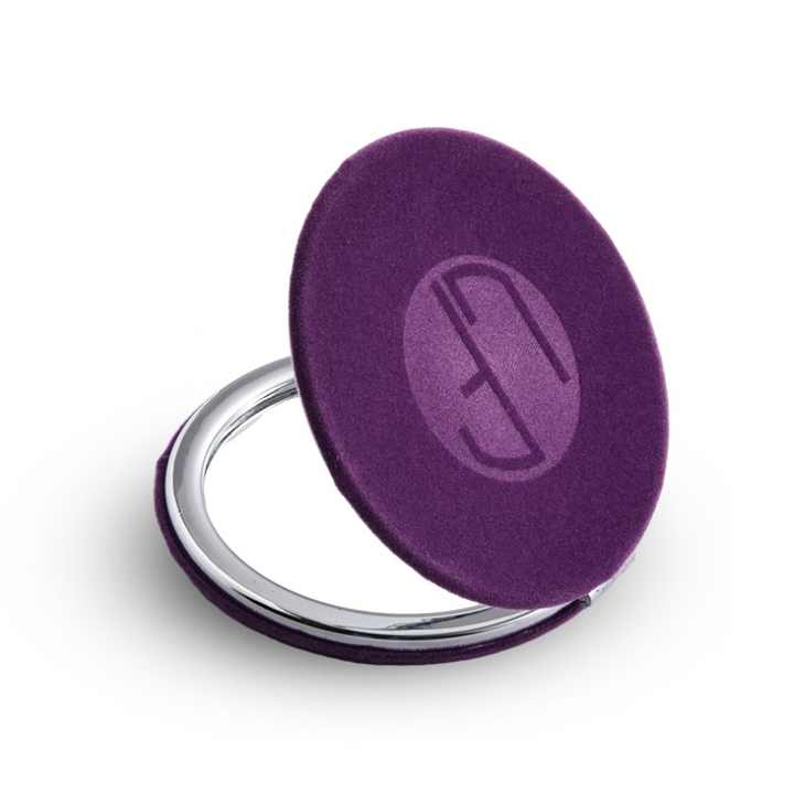 กระจกพกพาแบบพับได้สองด้าน ผ้ากำมะหยี่สีม่วง พร้อมโลโก้ส่วนตัว ตกแต่งสีเงิน