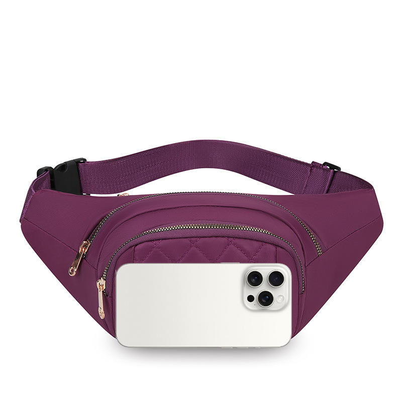 กระเป๋าคาดหน้าอกผู้หญิงสีม่วงพร้อมกระเป๋าหลายช่อง ซิปกันน้ำ กระเป๋าคาดเอวแบบลำลองสำหรับใช้ในชีวิตประจำวัน ฤดูใบไม้ผลิ 2026