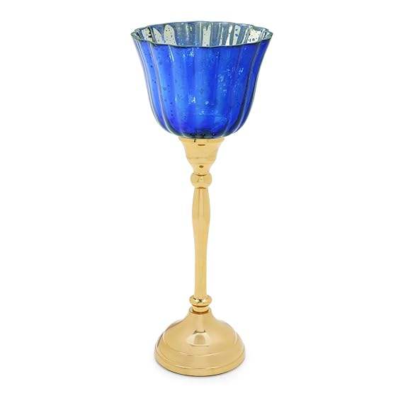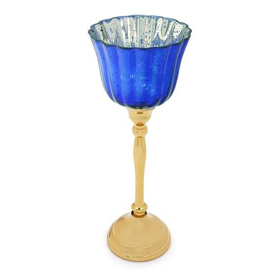 เชิงเทียนสีม่วงและสีทองพร้อมขาตั้งโลหะขนาดเล็กโรแมนติกแสงเทียนที่หรูหราในบ้าน