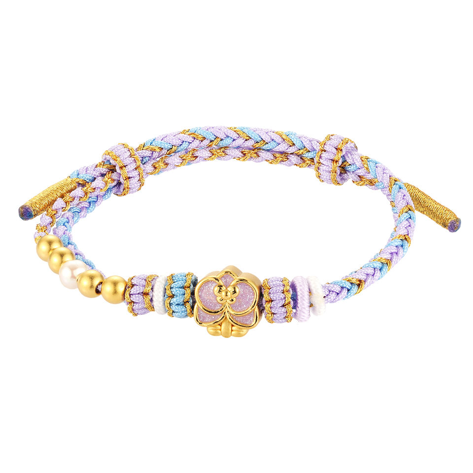 กำไลข้อมือลูกปัดถักลายทองคำบริสุทธิ์24K สไตล์หรูหราการออกแบบระดับไฮเอนด์สีม่วง