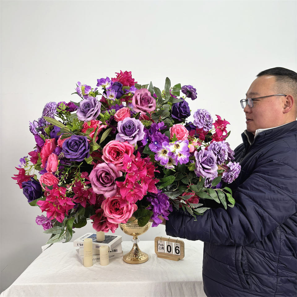 ลูกบอลดอกไม้ประดับตกแต่งงานแต่งงานสีม่วง รูปทรงคลาสสิก จัดดอกไม้ประดิษฐ์