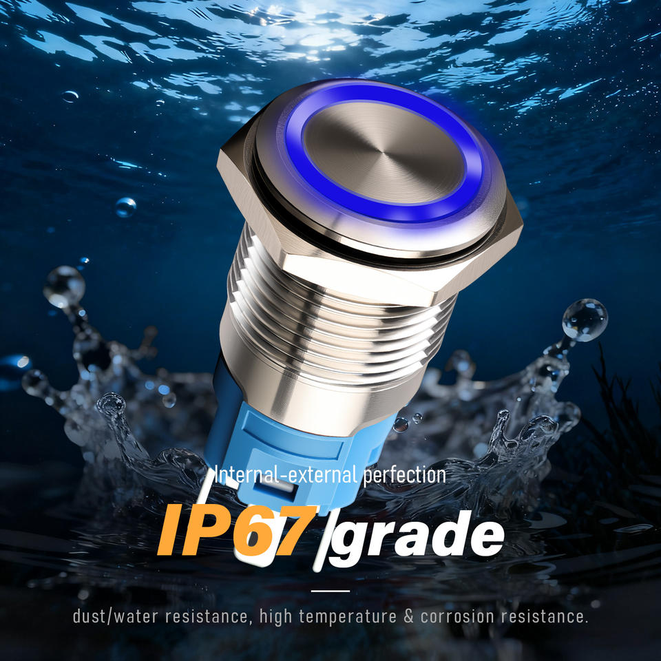 แหวนสีฟ้าสวิทช์แบบกดสว่าง12V 24V DC ให้สถานะที่ชัดเจนในอุปกรณ์อุตสาหกรรม