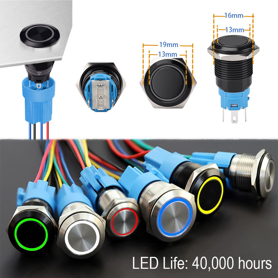 สวิตช์กดแบบกดติดปล่อยดับ สแตนเลส อลูมิเนียม IP65 250V 15A 125V 0.5A สำหรับเครื่องใช้ไฟฟ้าในบ้าน วงจรไฟฟ้า 1NO1NC แบบกดติดปล่อยดับ