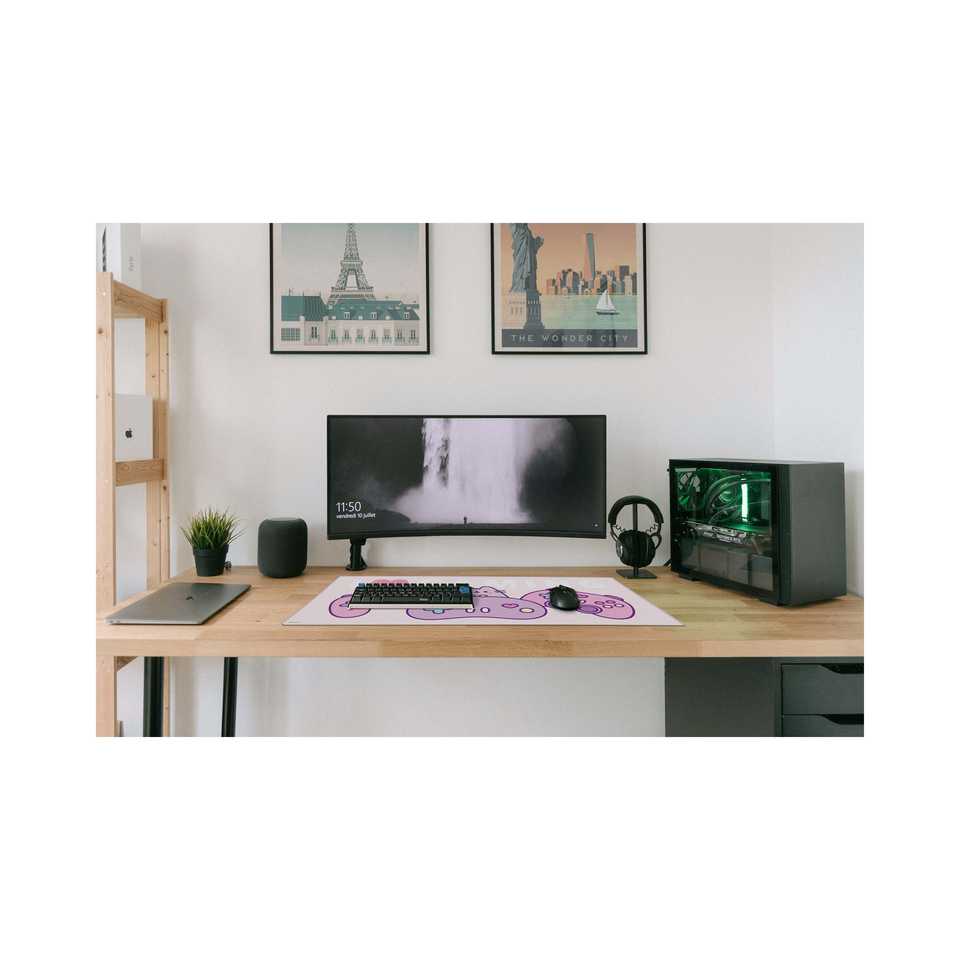 แผ่นรองเมาส์และคีย์บอร์ด Pusheen XL กันน้ำ รองรับการชาร์จไร้สาย ลายพิมพ์ สี่เหลี่ยม รุ่น RGB อุ่นได้ อุปกรณ์เสริมคอมพิวเตอร์
