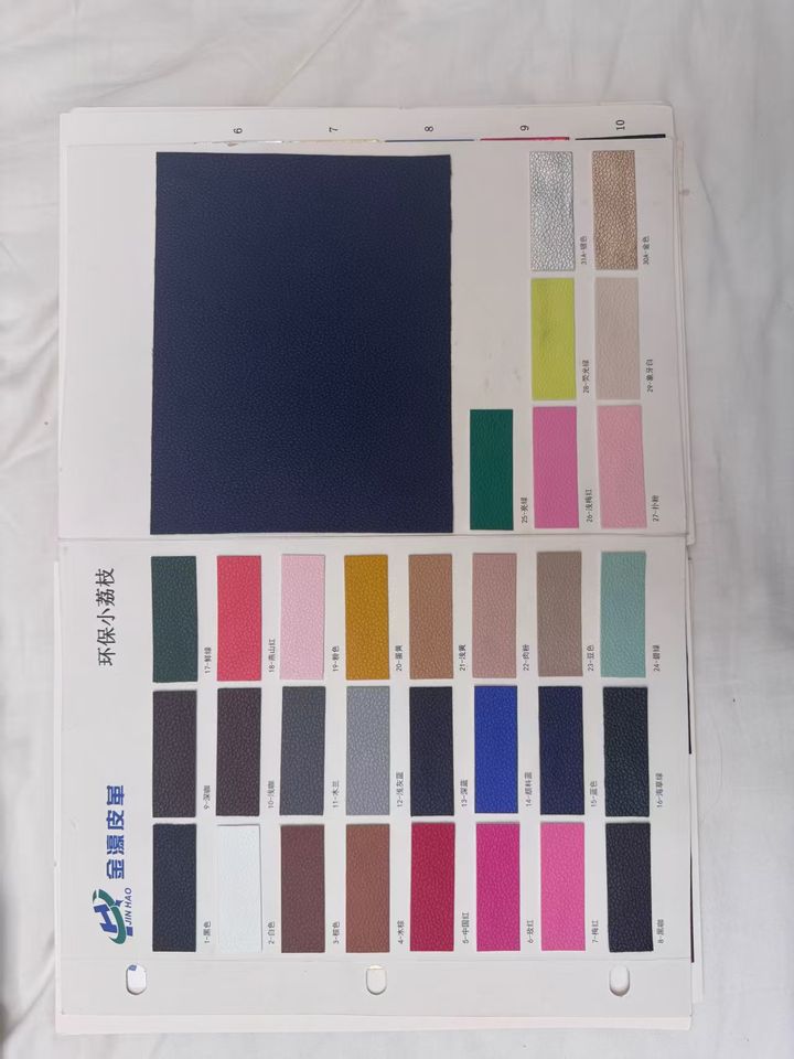 หนังเทียมลายลิ้นจี่เล็กๆ ขนาด 0.8 มม. ผลิตจาก PVC เป็นมิตรกับสิ่งแวดล้อม ป้องกันเชื้อรา เหมาะสำหรับตกแต่งกระเป๋า เสื้อผ้า และเข็มขัด