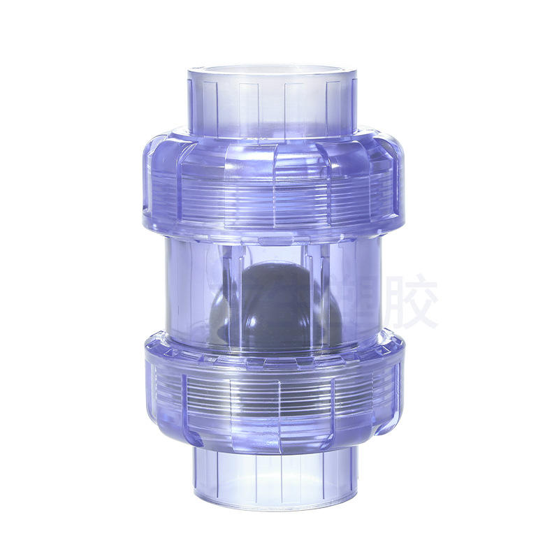 วาล์วกันกลับแบบใส PVC ข้อต่อคู่ ขนาด 20 มม. 25 มม. 32 มม. 40 มม. 50 มม. 63 มม. พร้อมซีลยางสำหรับควบคุมการไหลของน้ำ