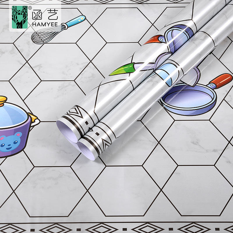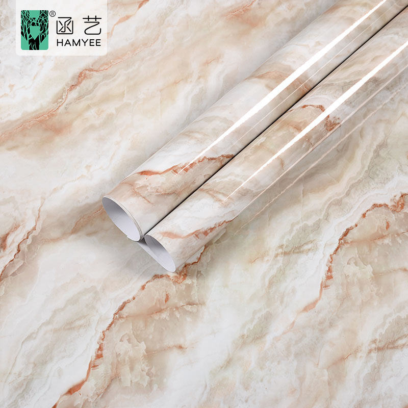 วอลล์เปเปอร์ PVC ตู้ผลไม้หินอ่อนไวนิลติดผนังกระดาษไวนิลวอลล์เปเปอร์ห้องครัวมีกาวในตัว