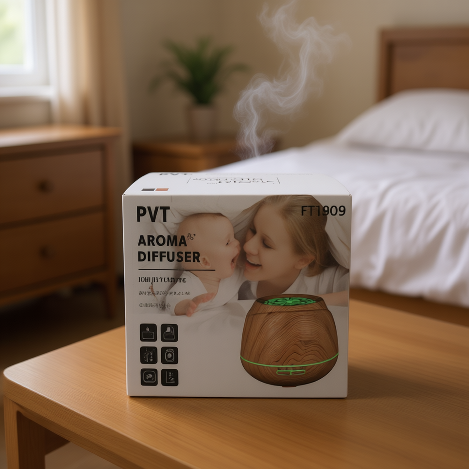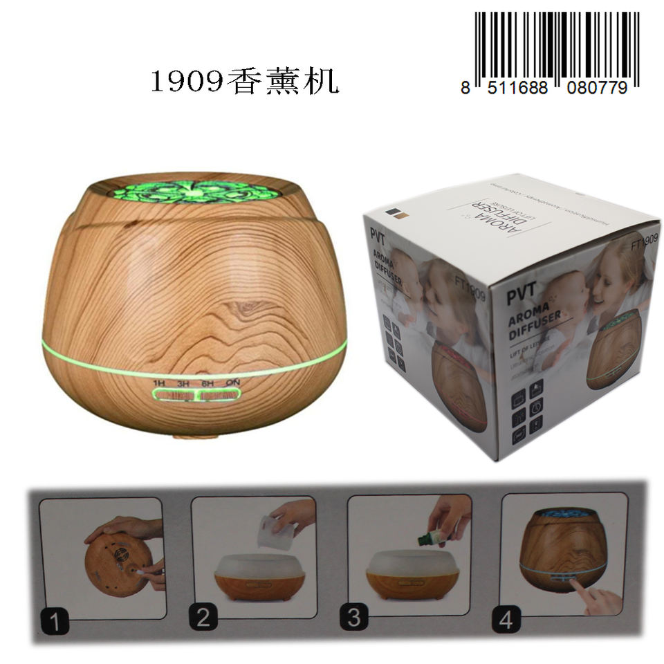 เครื่องกระจายกลิ่นอโรมาแบบพกพา วัสดุไม้ ความจุ 0.5 ลิตร พร้อมไฟเปลี่ยนสี สำหรับใช้ในบ้าน