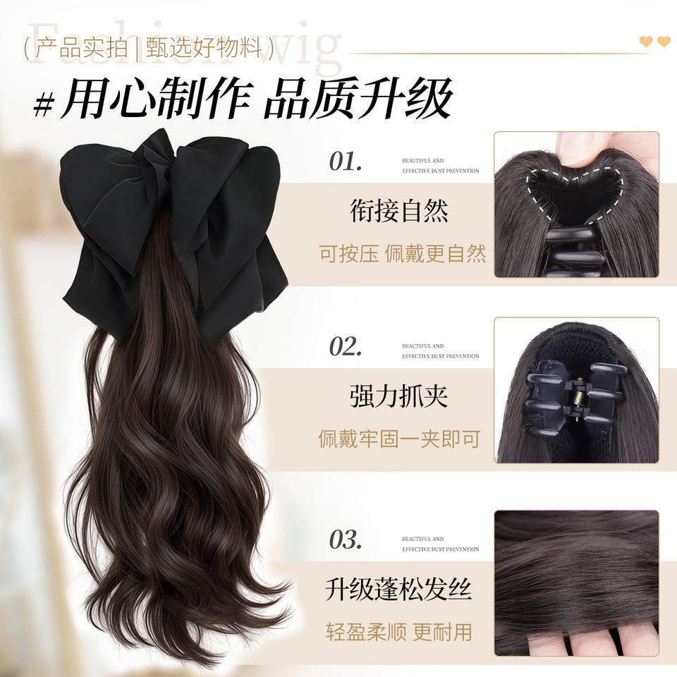 วิกผมหางม้าแบบหนีบสำหรับผู้หญิง วิกผมยาวหยิกจากเส้นใยคาเนคาลอน ไม่ต้องใช้กาว ติดง่าย เหมาะกับทุกรูปหน้า
