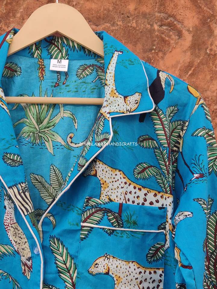 ชุดนอนพิมพ์ลายเสืออินเดีย,ชุดนอนผ้าฝ้าย100% อินทรีย์ชุดกลางคืนชุดนอนขายส่ง