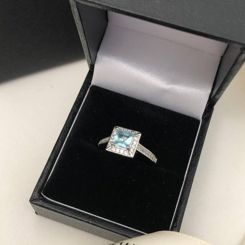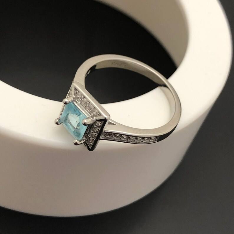 แหวนเงินแท้ประดับพลอยอะความารีนทรงพีระมิด ของขวัญวันเกิดเดือนมีนาคมสำหรับผู้หญิง