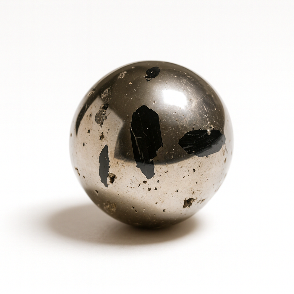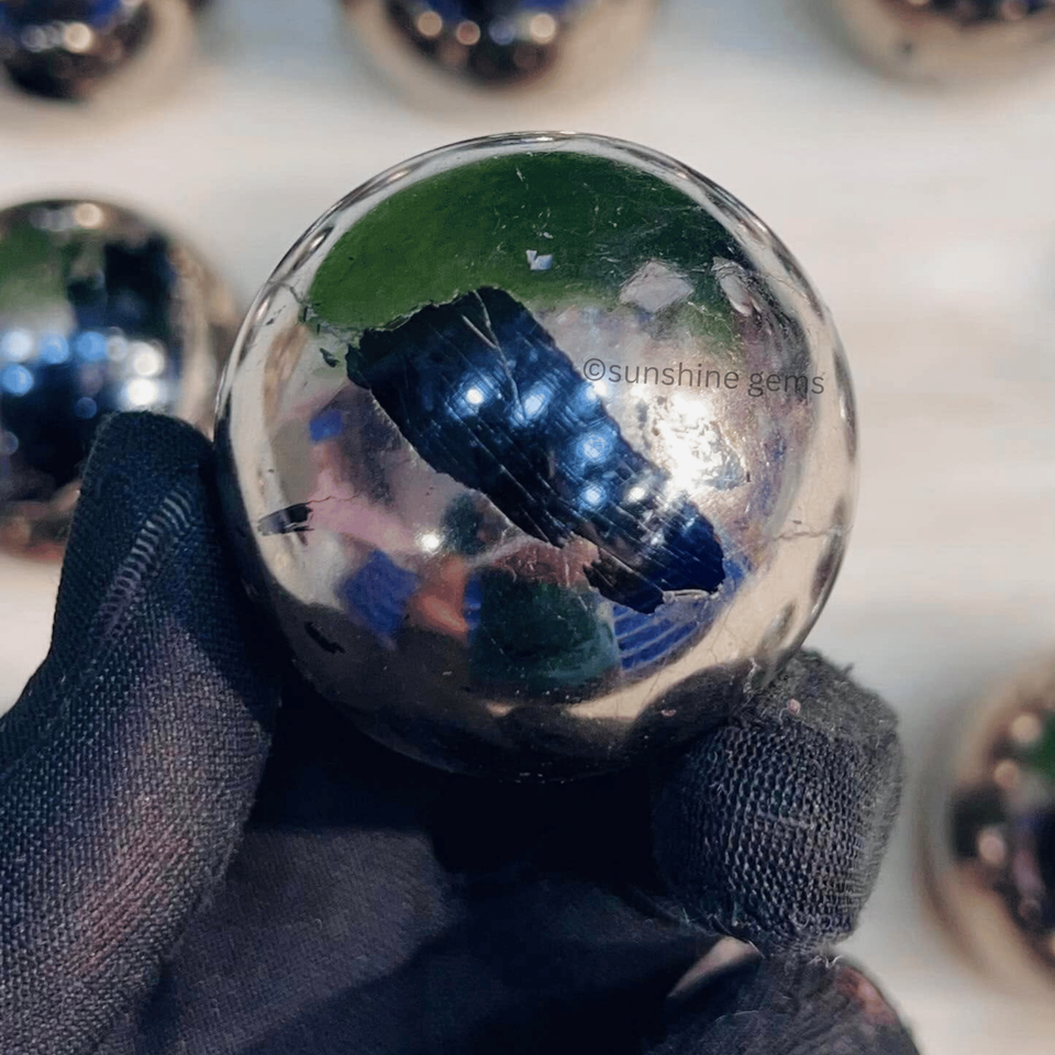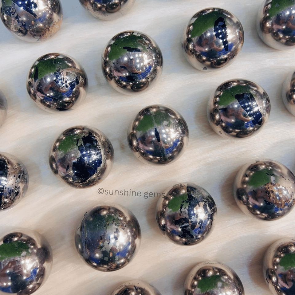 ลูกบอลคริสตัลไพไรต์ผสมทัวร์มาลีนสีดำ หินธรรมชาติสำหรับการบำบัด การทำสมาธิ และการตกแต่ง จำหน่ายจำนวนมาก
