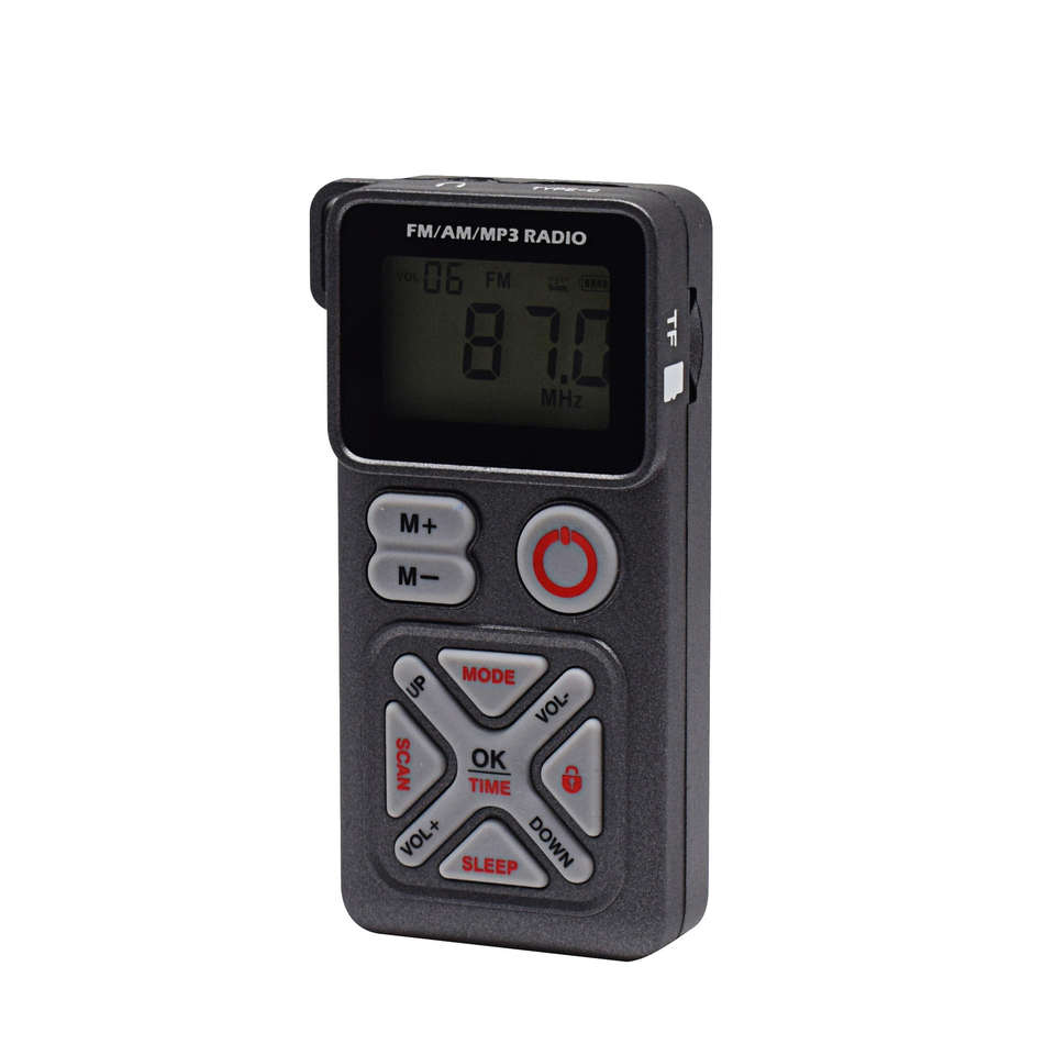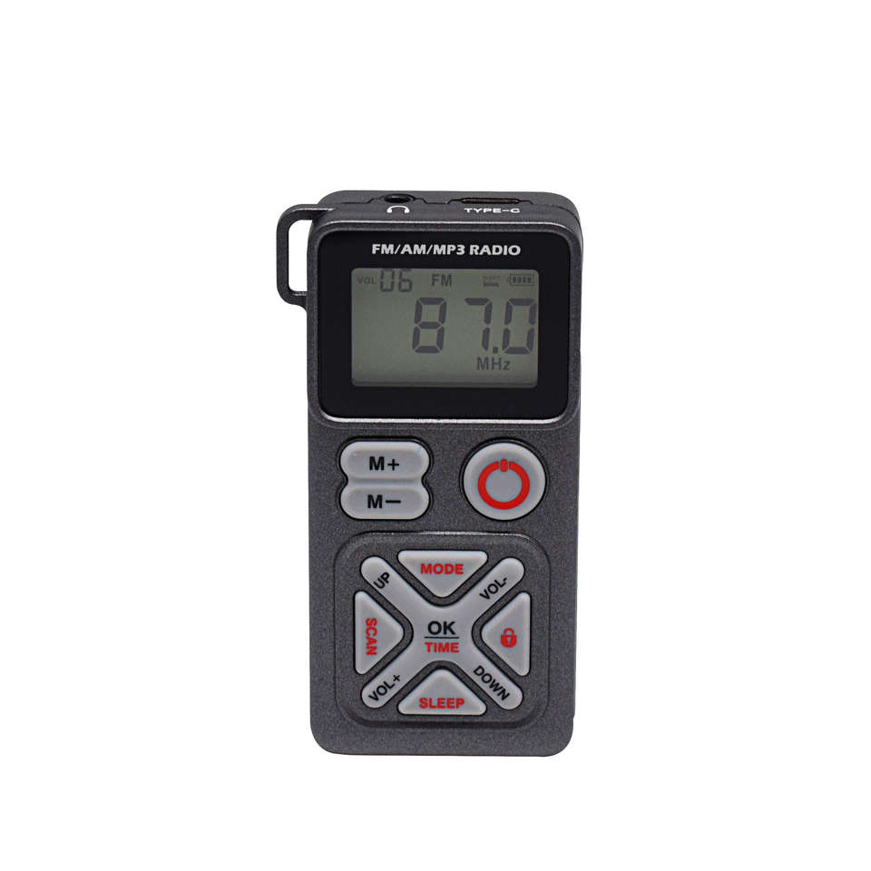 Q-501 มินิพ็อกเก็ตเอฟเอ็ม/เอเอ็ม/MP3 วิทยุ 1200mAh จอแสดงผล LCD พอร์ต USB การ์ด TF เล่นเพลงพร้อมเชือกคล้อง