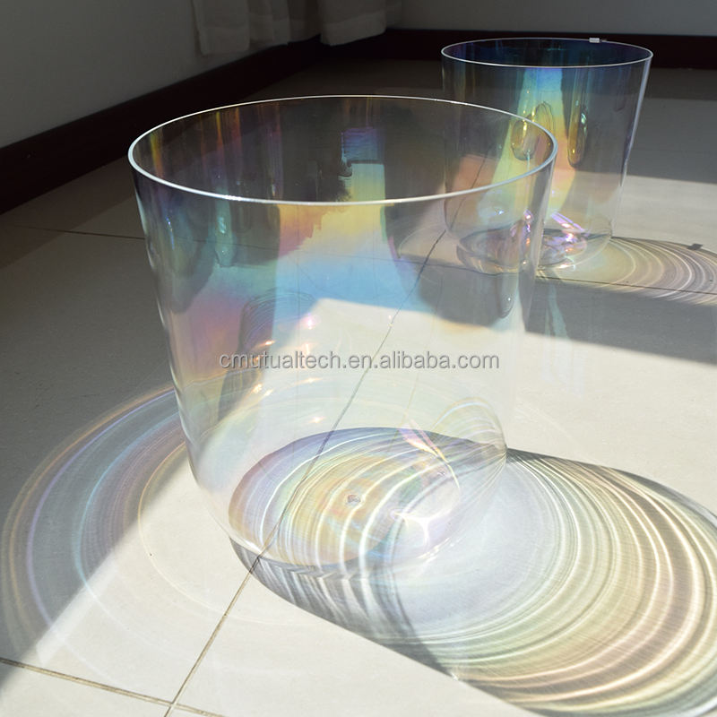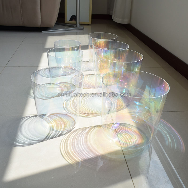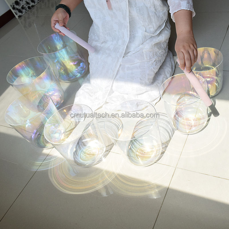 ชุดขันคริสตัลควอตซ์ใสสีคอสมิกสำหรับการทำสมาธิ โยคะ และบำบัดด้วยเสียง