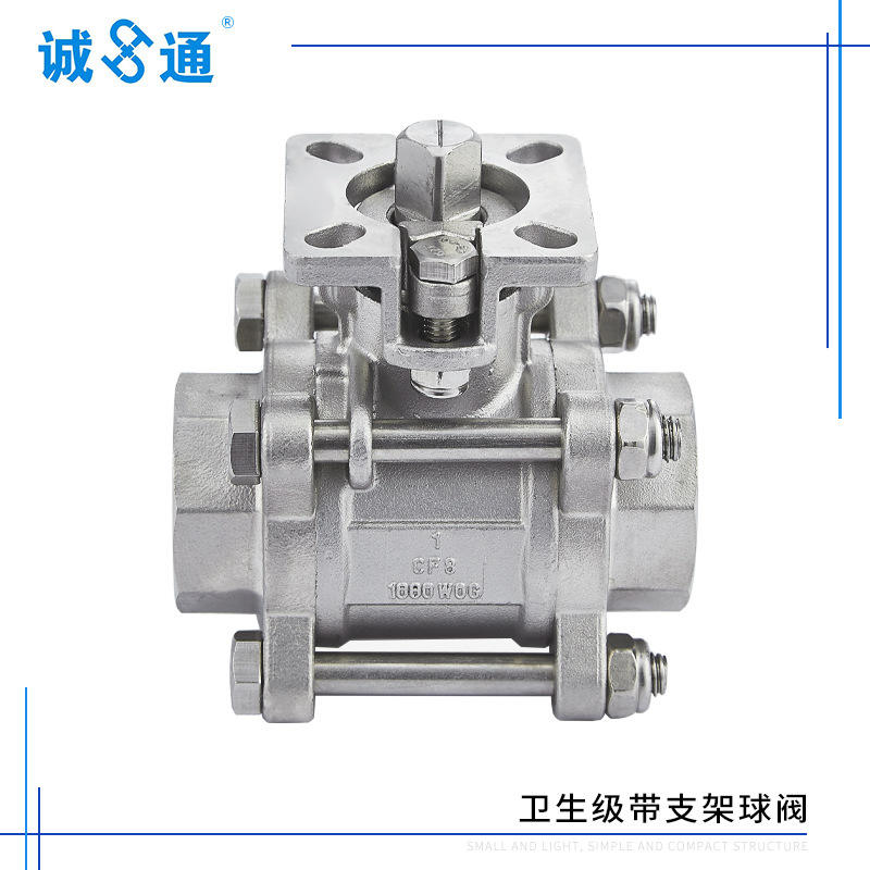 วาล์วบอลเกลียวในแบบแรงดันสูงชนิดข้อต่อ 3 ชิ้น ทำจากสแตนเลส Q11F พร้อมฐานรองสูง