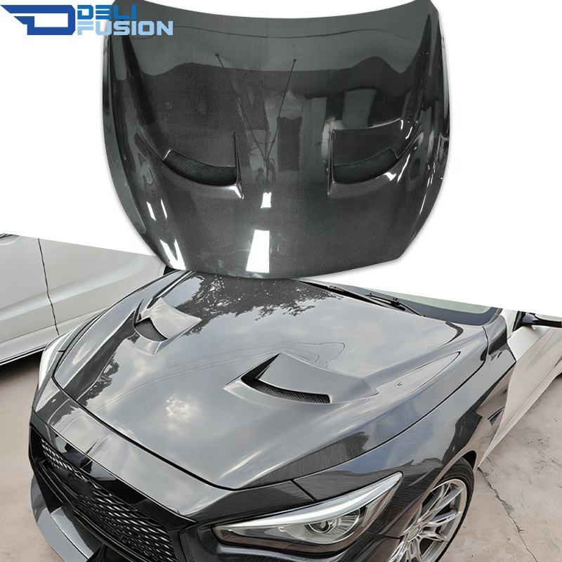 Q50 LB GTR ฮูดคาร์บอนไฟเบอร์มีช่องระบายอากาศสำหรับ Infiniti 2014-2019 Q50 V37ขอบฟ้า400R ฮูด