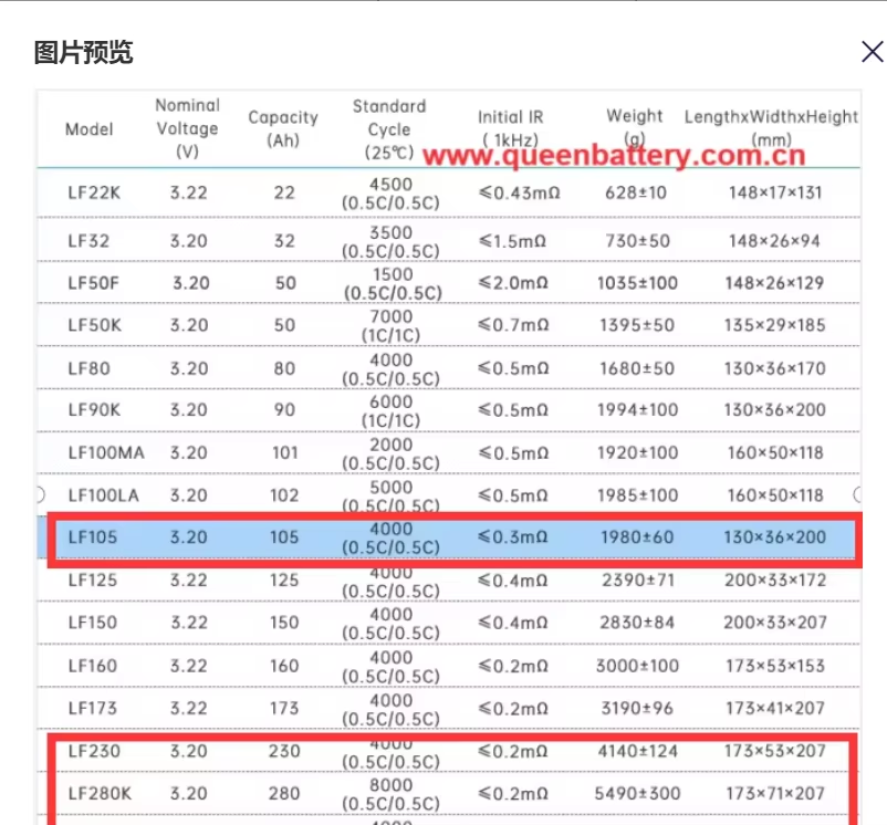QB EV แบตเตอรี่ LF100LA LF100 LiFePO4 5000รอบ3.2V 100Ah-314Ah 18650ขนาดสำหรับของเล่น