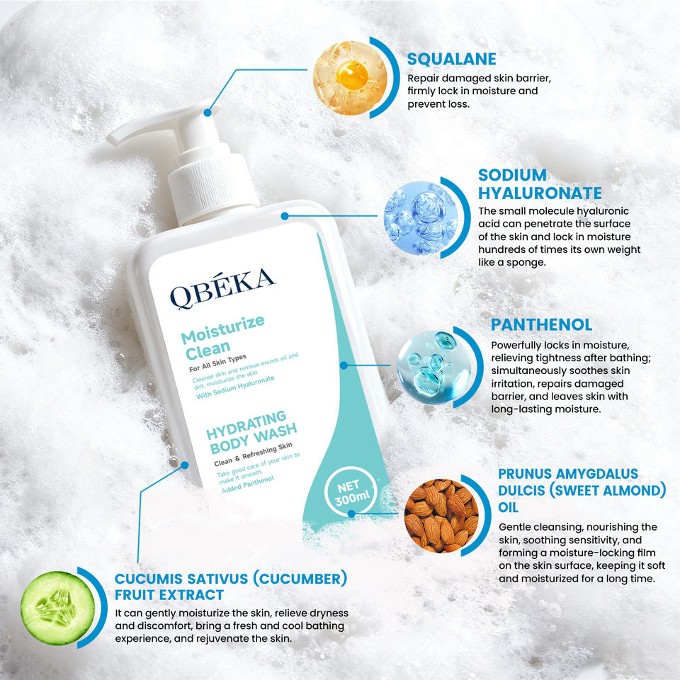 QBEKA ครีมอาบน้ำ บำรุงผิวชุ่มชื้นยาวนาน 24 ชั่วโมง ให้ผิวนุ่มดุจโลชั่น ทำความสะอาดผิว พร้อมบำรุงผิว ปราศจากซัลเฟตและพาราเบน